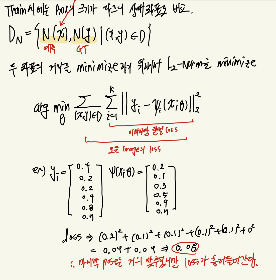 그리고 이렇게 상대 좌표로 변환되었다면, 각 좌표가 실제 좌표와 가까워지도록 하기 위해서 을 최소화 하는 손실 함수를 설정하였다고 합니다.