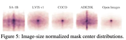 본 프로젝트의 데이터셋의 경우 다른 데이터셋에 비해서 높은 해상도를 가지고 있으며, 다양한 라이센스를 포함하고 있습니다. 그리고 웹상에서 데이터를 제공하기에 작은 픽셀의 길이가 1500이 되도록 다운 샘플링된 이미지를 제공하고 있다고 합니다. 그리고 마스크의 경우 99.1%가 자동으로 설정되었고, 추가로 마스크 퀄리티 또한 IOU를 비교했을떄 94% 의 마스크가 IOU 90을 넘김을 통해 마스크 또한 신뢰성이 높다고 주장하고 있습니다.