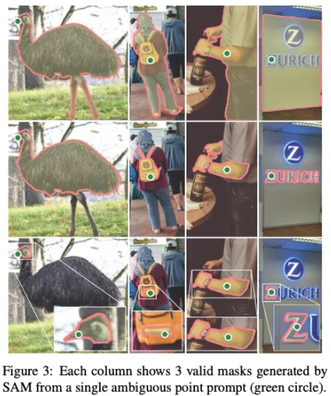 이에 promptable segmentation task를 푸는것을 목표로 하고 있습니다. prompt 로 텍스트, 점, 선, 박스, 마스크 와 같이 어떠한 prompt가 들어와도 segmentation을 진행하는 것을 목표로 하고 있습니다. 그래서 모호한 prompt가 들어오더라도 유효한 결과를 제출하는 것이 과제입니다.