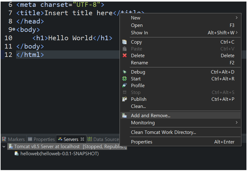 이클립스 하단의 Servers - 마우스 오른쪽 - Add
