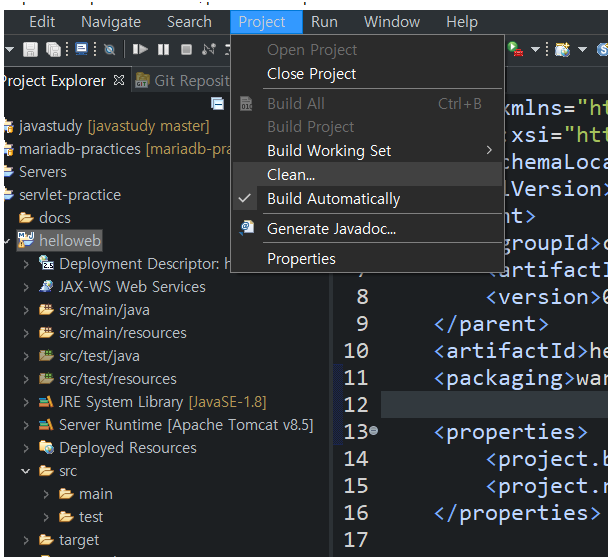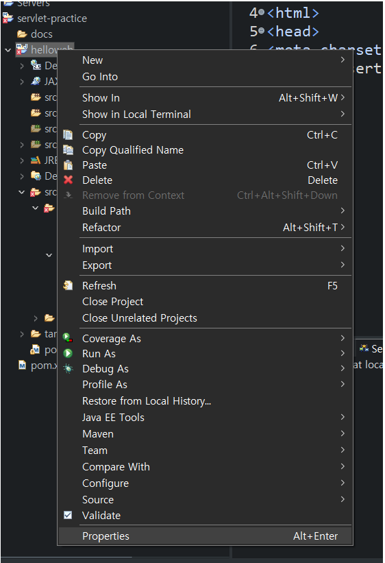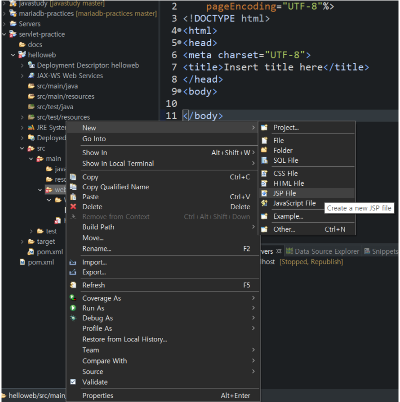 /src/main/webapp 밑에 WEB-INF 폴더가 생성되었는지 확인한다