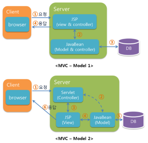 - View: UI를 담당한다. 클라이언트 측 기술인 Html, Css, Javascript등으로 만들어진 컨테이너이다.