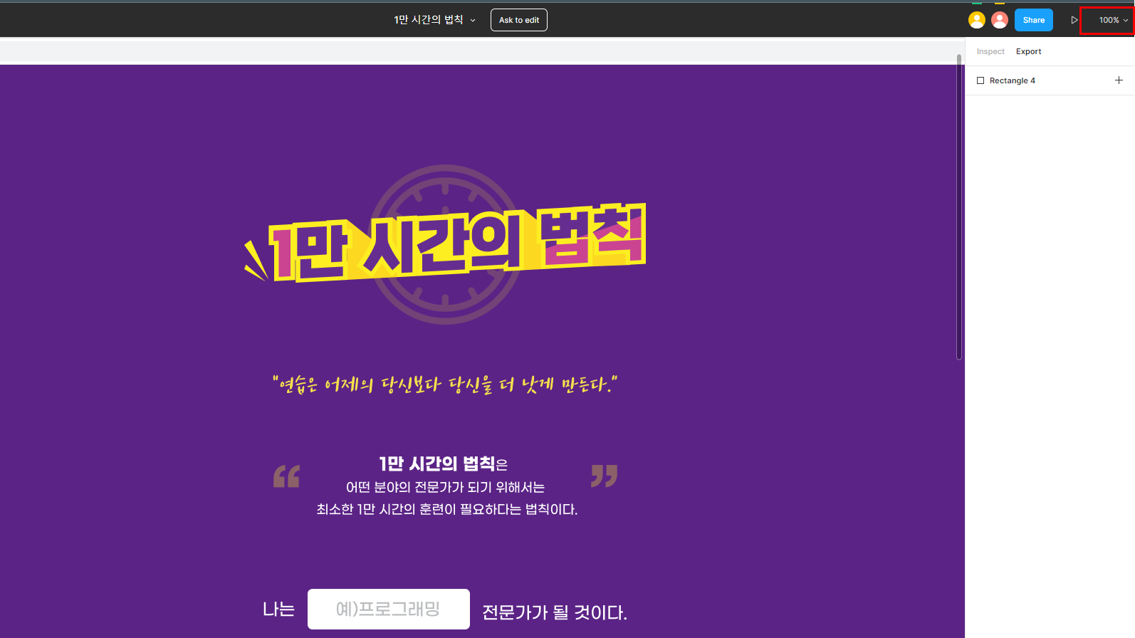 피그마에서 페이지 화면 크기를 100% 설정 후, 주소창을 살짝 걸쳐서