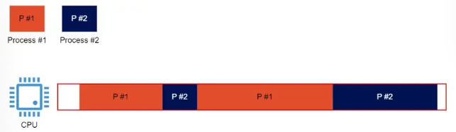 : 단일 CPU 에서 여러 개의 작업을 동시에 번갈아가며 처리하여 여러 개의 작업을 동시에 수행하는 것처럼 보이게 하는 것이다.