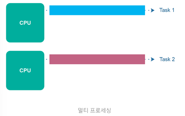 : 여러 프로세서 ( CPU ) 를 사용하여 각각의 작업을 동시 에 처리하는 것