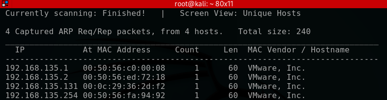 이후 칼리 머신에서 netdiscover를 통해 주변 기기를 탐색하면