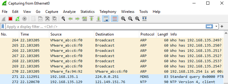 한 기기에서 많은 ARP 패킷을 보냈다는 것을 알 수 있다.