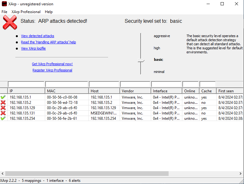 XArp 프로그램을 통해 간단히 ARP 스푸핑을 탐지할 수 있다.