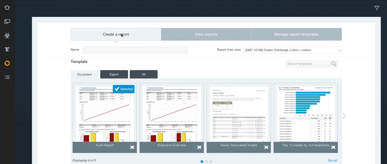 report 페이지에 들어가보면 원하는 템플릿 선택해서 취약점 등에 대한 pdf 보고서를 자동으로 생성할 수도 있다.