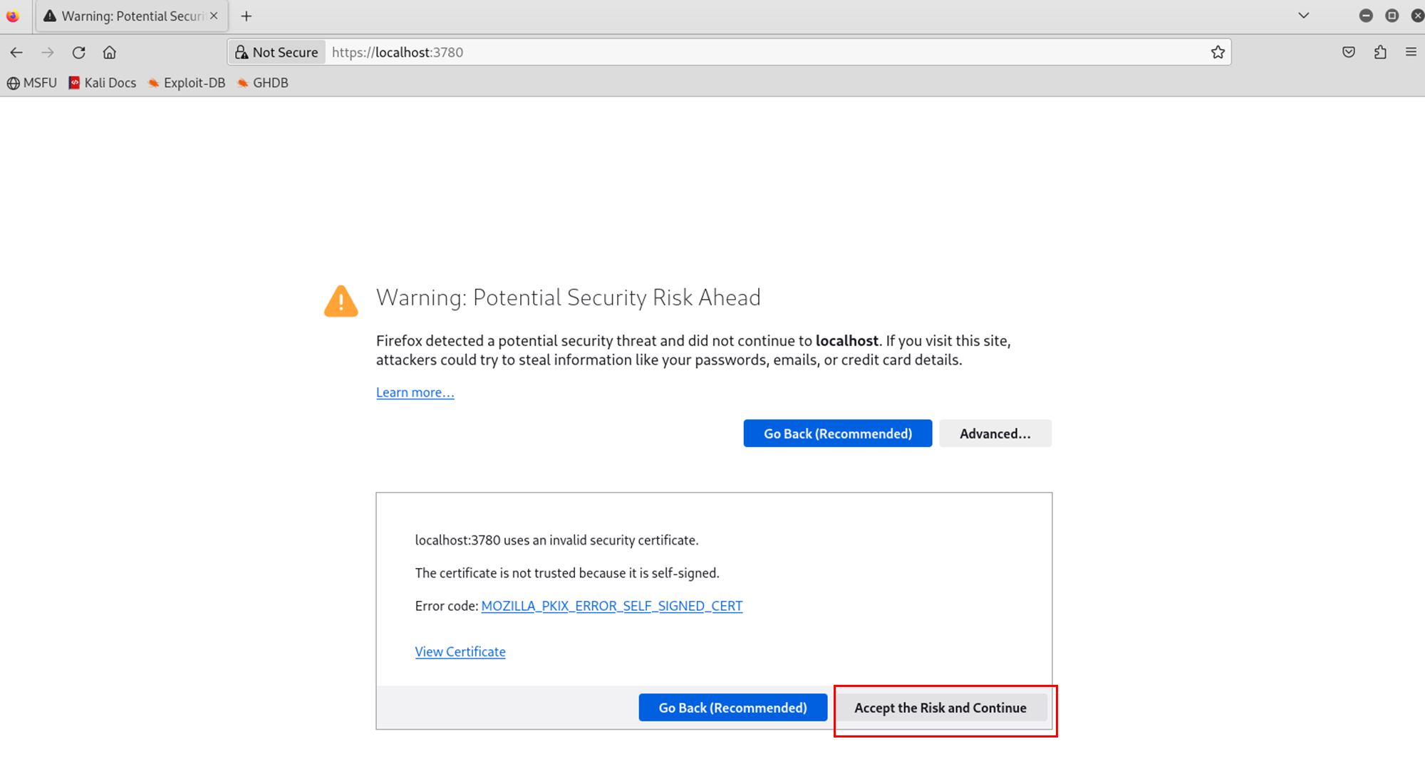Advenced... > Accept the Risk and Continue 를 누른다.