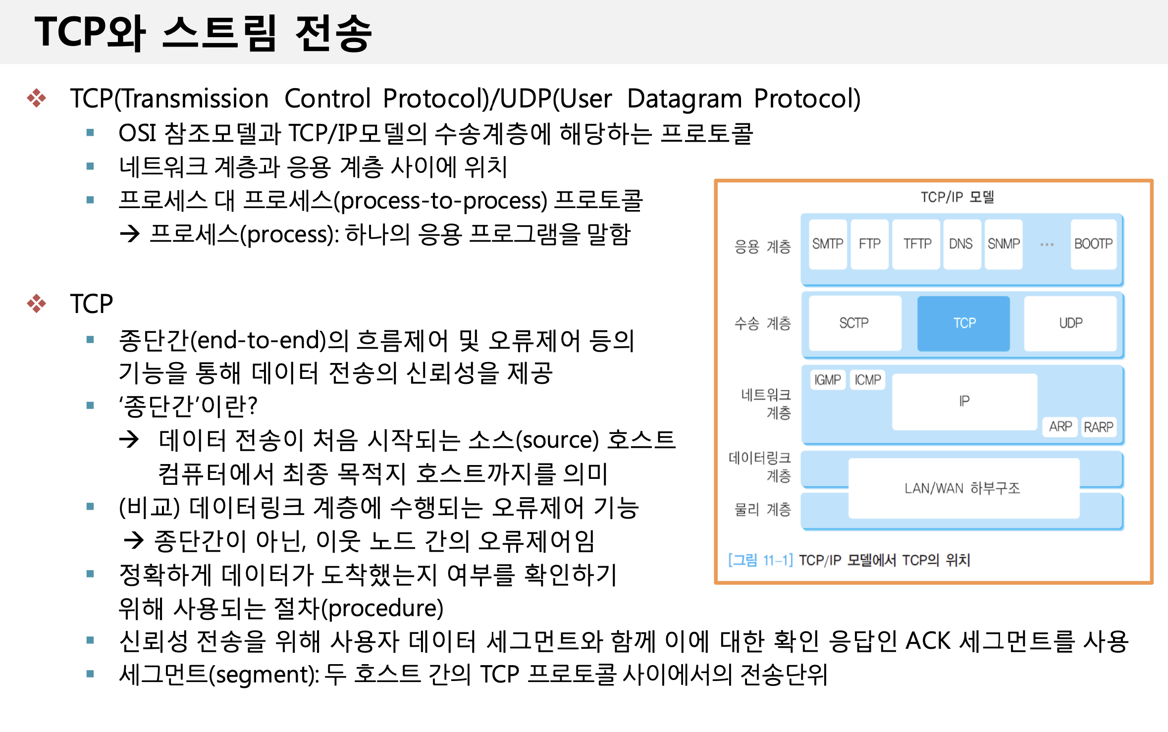 데이터의 중복이나 손실 없이 종단간 데이터의 전송을 보장함을 의미
