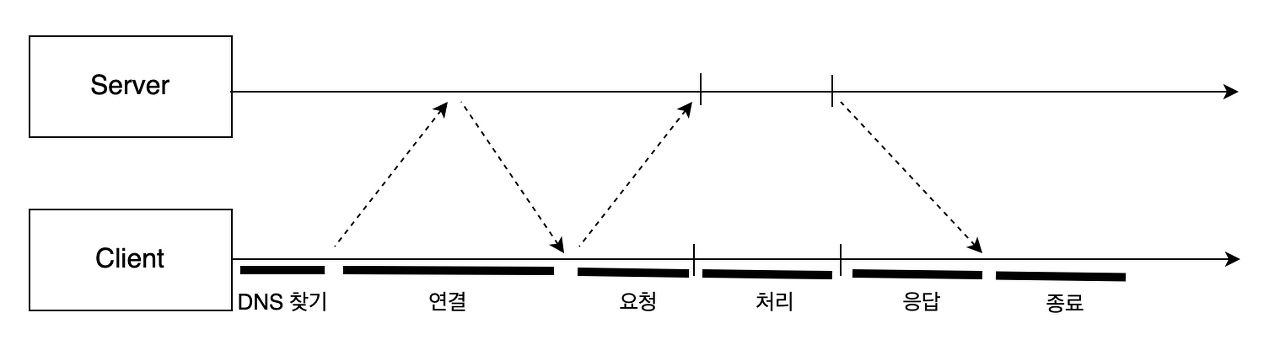 요청 메시지가 서버로 전달되고 서버에서 처리되는 데 시간이 소요된다.