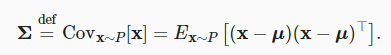 공분산 행렬은 $u := E_{x \sim P[x]} 일 때