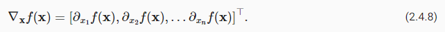x에 대한 함수 f의 gradient는 벡터 n의 partial derivatives이다.