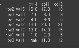 row정렬 후 val의 정렬까지 완료된 것을 확인할 수 있습니다.print(df.sort_index(axis=0, sort_remaining=True))
