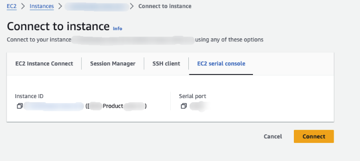 EC2 대시보드 > Connect > EC2 serial console > Connect