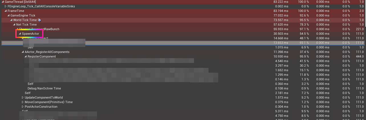 다음은, Profiler 도구를 사용해 발견한 개발버전의 프로젝트 A의 프레임 부하 사례를 소개하고자 한다.
