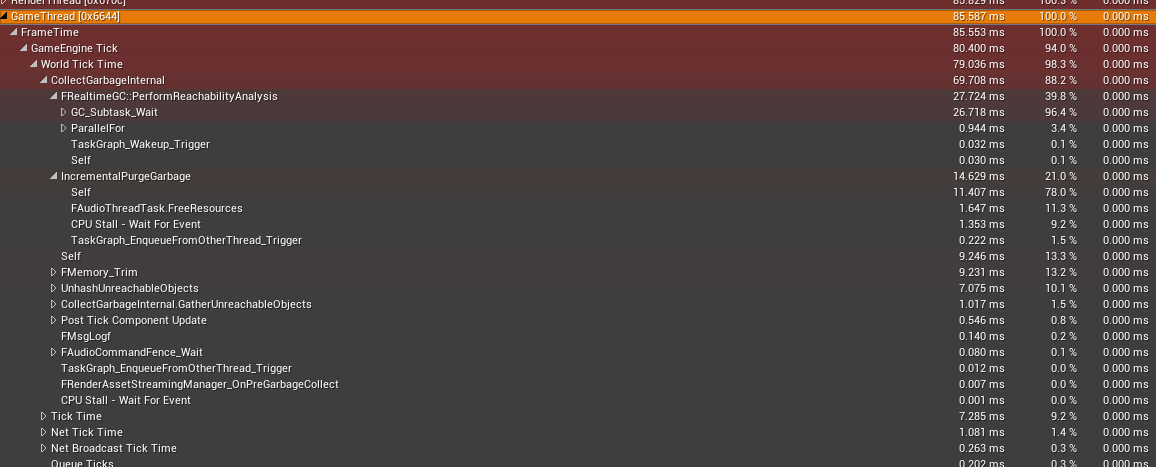 이는 시작 시 단말기 내부에 ue4stats 확장자의 파일이 생성되고 이 파일을 Profiler에 로드해 사용하는 것인데, 다른 프로파일링 도구와 비교해 게임의 성능 저하가 적고 사용법이 간단하기 때문에 권장하는 도구이다. 프로젝트에서는 위의 자동화된 통계수집도구와 결합해 사용하였다.