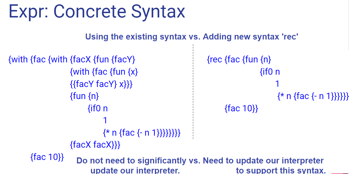 새로운 방식(rec) : 간단 :: interpreter를 새롭게 update해야함.