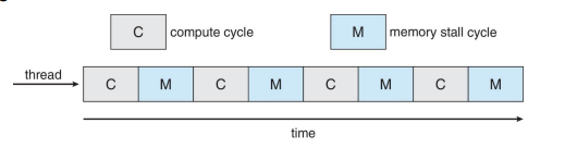 multicore processor의 memory stall 같은 문제를 해결하기 위한 수단(remedy) : multithreaded processor cores