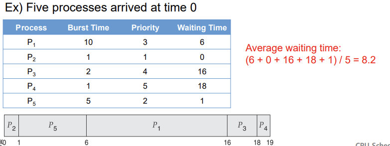 우선순위 스케줄링에서는 각 프로세스에 우선순위가 부여됩니다. 이 우선순위는 내부적으로나 외부적으로 할당될 수 있습니다.