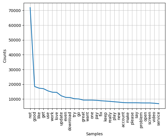 lot_1.plot(30) # 상위 30개의 단어 출력