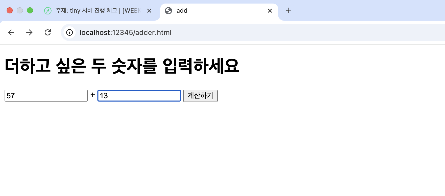다시 같은 adder.html 페이지로 이동해서 계산하기 버튼을 눌러 submit 해보자.