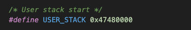 user stack의 주소는 0x47480000 부터 시작해서 아래로 증가한다는 점을 기억하자.