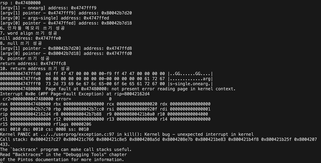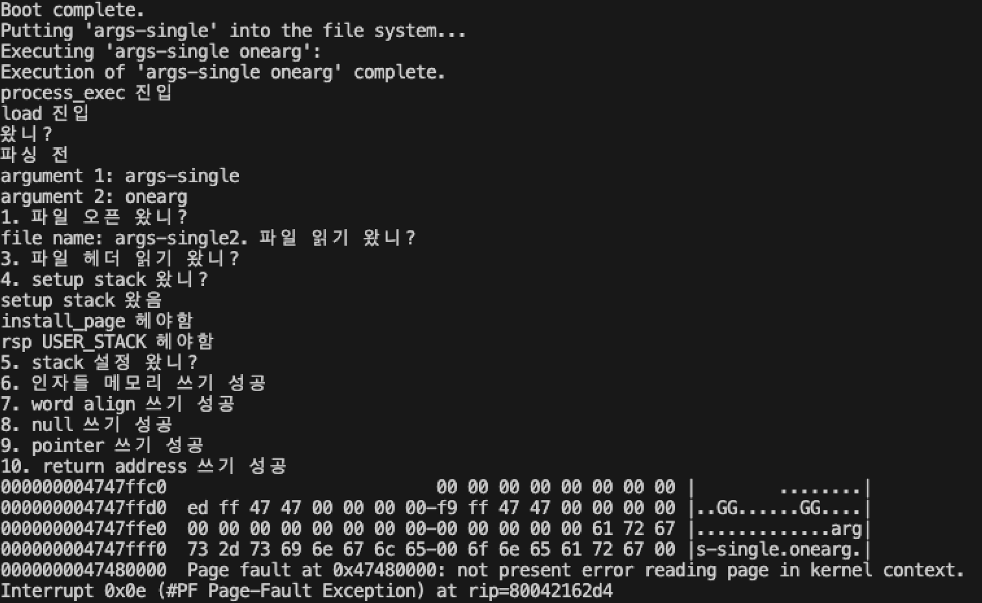 그래서 진짜 진짜 진짜로 argument passing 과제를 마무리할 수 있을 것만 같았다ㅠ