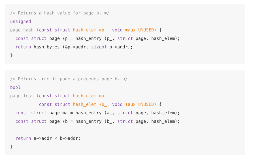 const struct page *p2 = hash_entry(b, struct page, elem);