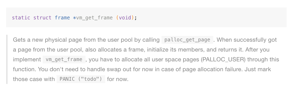 frame table은 vm.c 내에서 전역적으로 사용되어야 한다.