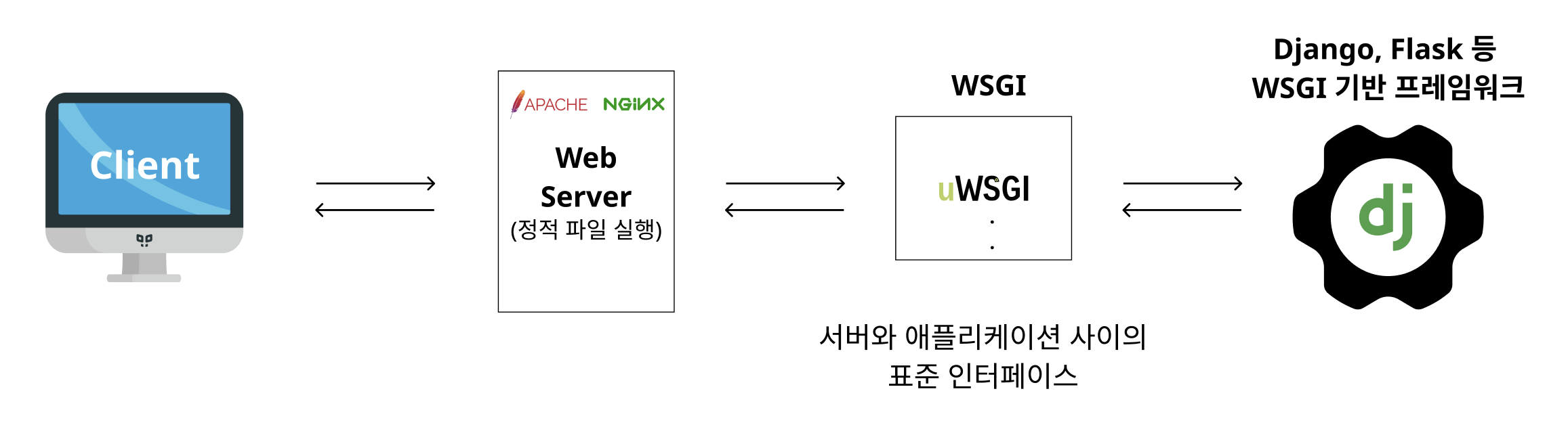 이유는, 웹 애플리케이션(Django, Flask 등)과 웹 서버(Apache, Nginx 등)는 독립적으로 발전되었기 때문이다. 그렇다보니, 웹 서버에서 각 프레임워크의 반환 정보를 예측할 수 없다는 문제점이 생겨났다. 그래서 이 사이에서 둘을 연결해주는 WSGI가 등장했다.