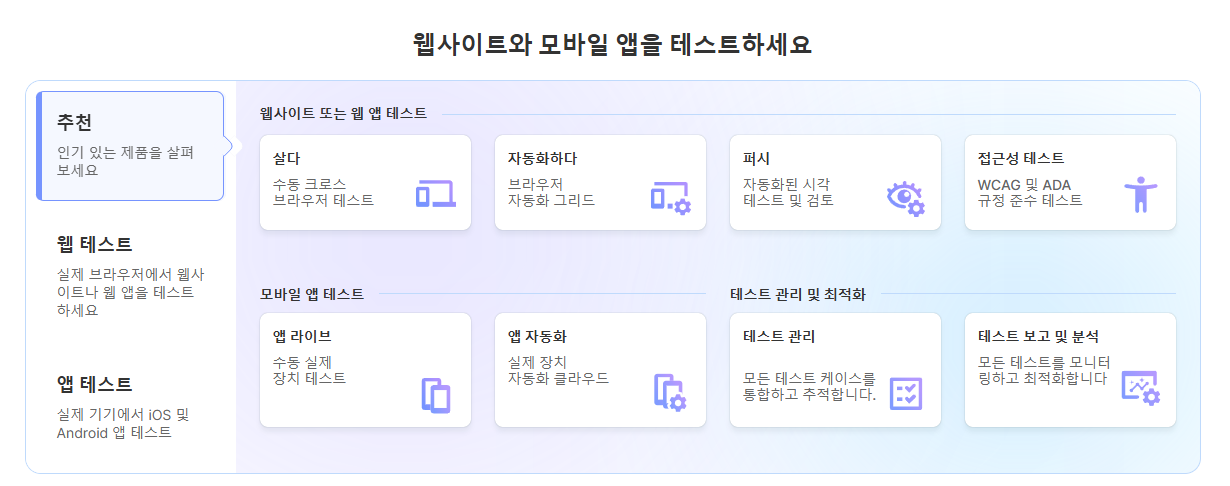 가격: 라이브 테스트 플랜은 월 $15부터 시작하며, 자동화 테스트 플랜은 별도로 제공됩니다.