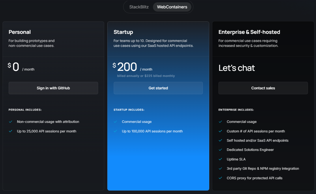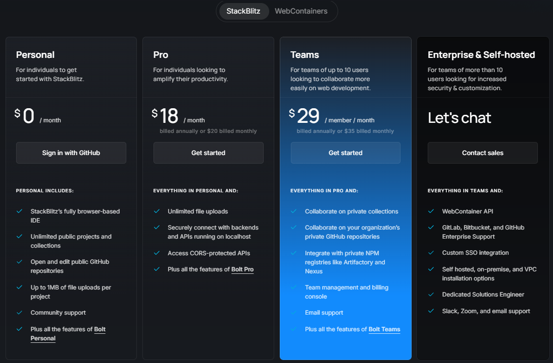 ※ 팀 작업 등 StackBlitz를 팀 단위로 사용하려면 유료 구독이 필요합니다.