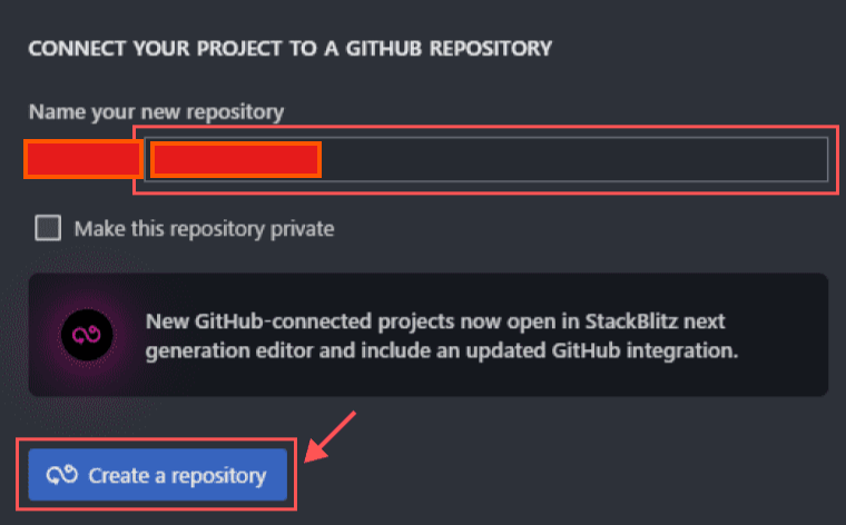 아래의 "Create a repository" 버튼을 클릭하면 진행 중인 프로젝트의 GitHub 리포지토리를 생성할 수 있습니다.