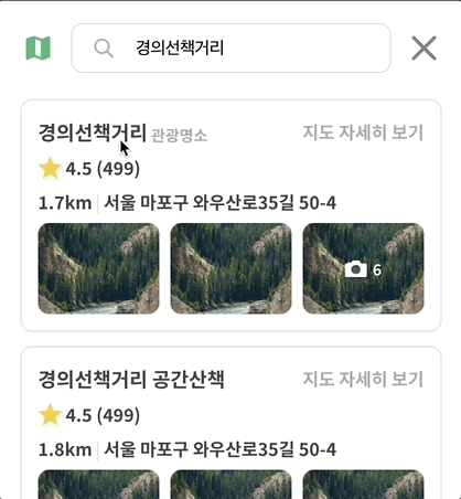 이런식으로 리스트뷰 상태로 검색결과가 먼저 뜨고 그다음에