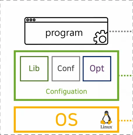 두 번째는 소프트웨어 실행을 위해 필요한 패키지, 라이브러리, 런타임 언어 등 의존을 위한 구성 요소