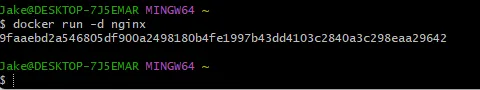백그라운드로 컨테이너를 실행하면 사진과 같이 컨테이너의 아이디만 출력 되고 곧 바로 사용자 입력창으로 돌아오게 된다