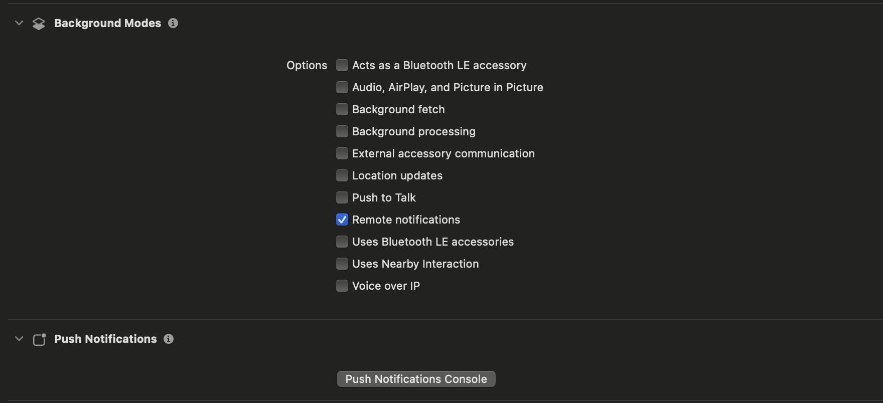 먼저 Xcode에 들어가서 project -> targets -> Signing & Capabilities 에 진입한뒤 +Capability 버튼을 눌러 Background Modes, Remote notifications를 추가해준다.