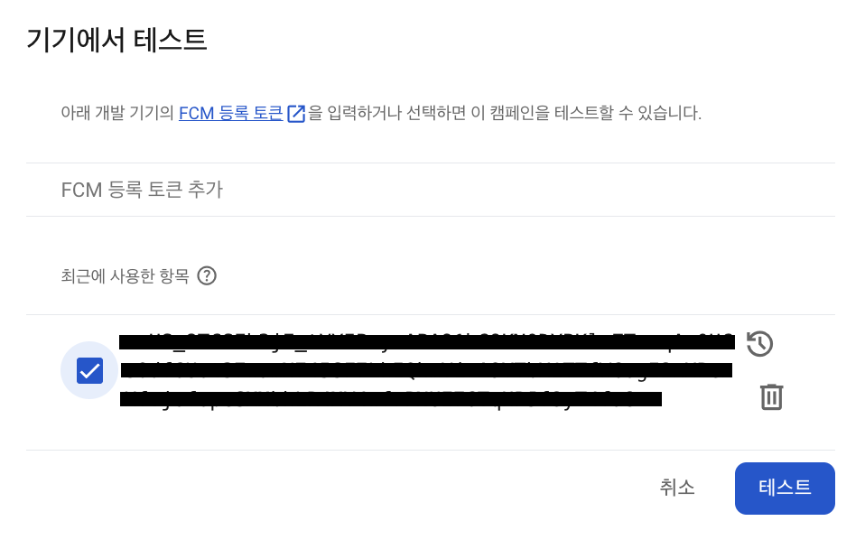 그럼 이런 창이 뜰텐데 앱을 빌드하면 FCM 토큰이 출력될건데 그 토큰을 여기다 넣어주고 테스트 버튼을 눌러준다.