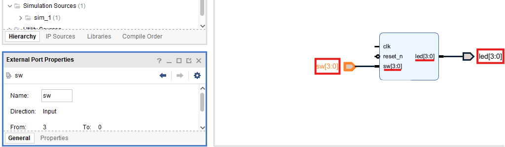 이런식으로 PORT / PIN 이름을 정확히 맞춰 줘야한다. // 필요시 Name을 수정해야함