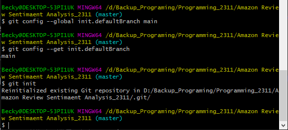 - 변경 이유: GitHub에서 만든 원격 Repository는 디폴트 브랜치명이 main으로 되어있기에 변경해줘야함
