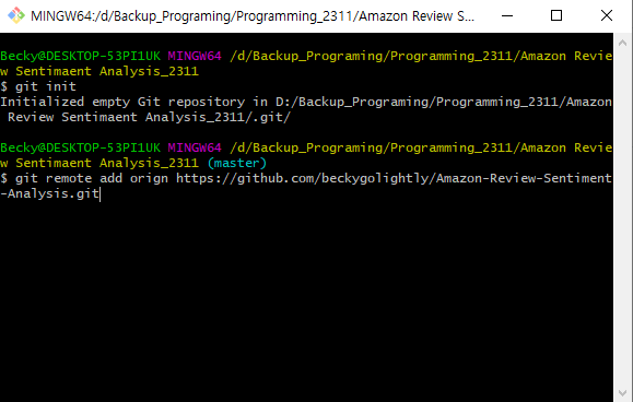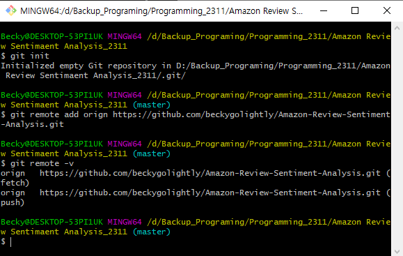 6. GitBash에서 'git remote add origin 복사주소 입력