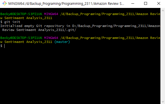 4. 동기화할 폴더 내 우클릭 > Git Bash Here 클릭 > 'git init' 입력