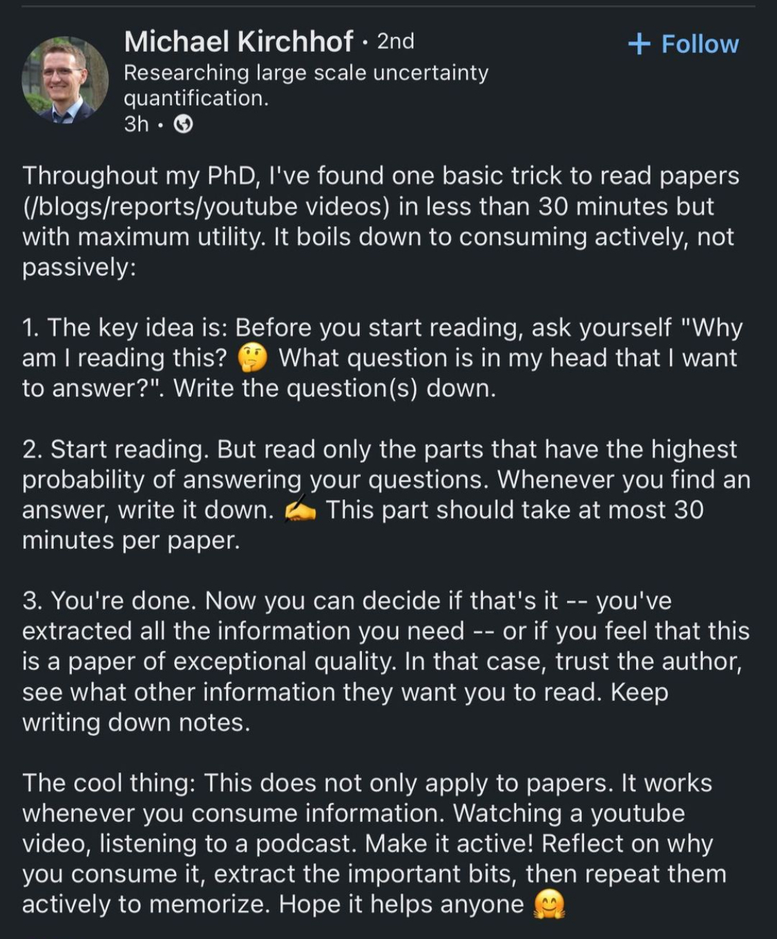 내가 원하는 모든 정보를 얻었는지, paper가 매우 뛰어난 퀄리티를 가졌는지 생각해보기. 만약 퀄이 좋다면 Author를 전적으로 믿고 읽어보기.