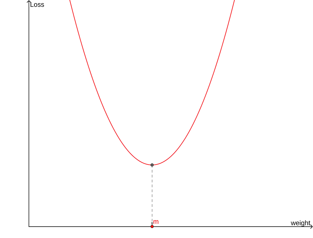 이 함수는 w=m에서 최솟값을 갖는다.