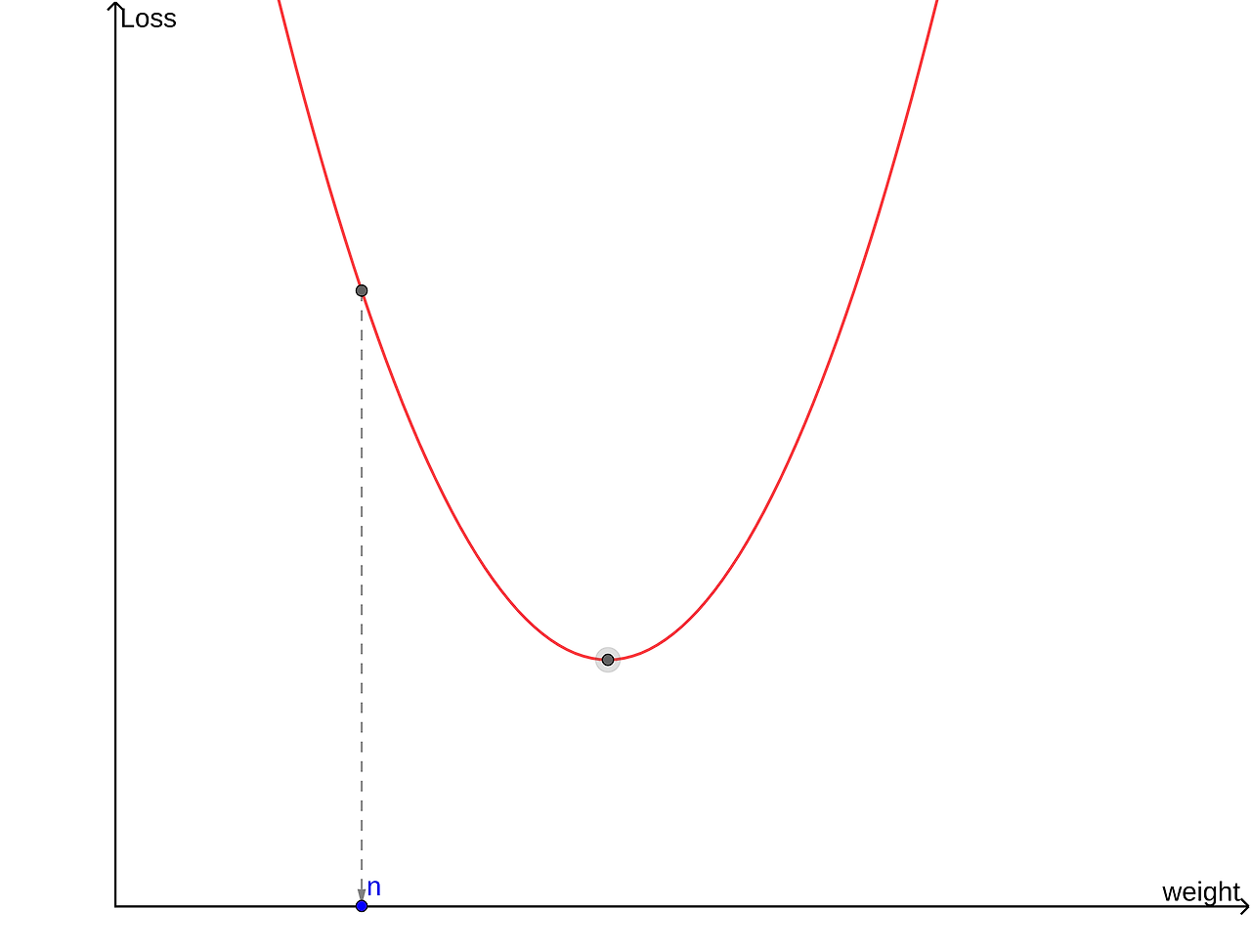 기울기가 크다는 건 극솟값을 갖는 w로부터 멀리 있다는 것을 의미한다. 즉, w의 미분계수의 절댓값과 w가 최솟점으로 이동해야 하는 거리가 비례하기 때문에 위 식을 이용해서 w가 최솟점에서 멀 때는 빠르게, 가까울 때는 천천히 수렴하도록 설정할 수 있고, 이는 alpha->Learning Rate(학습률) 파라미터를 통해 조정할 수 있다.