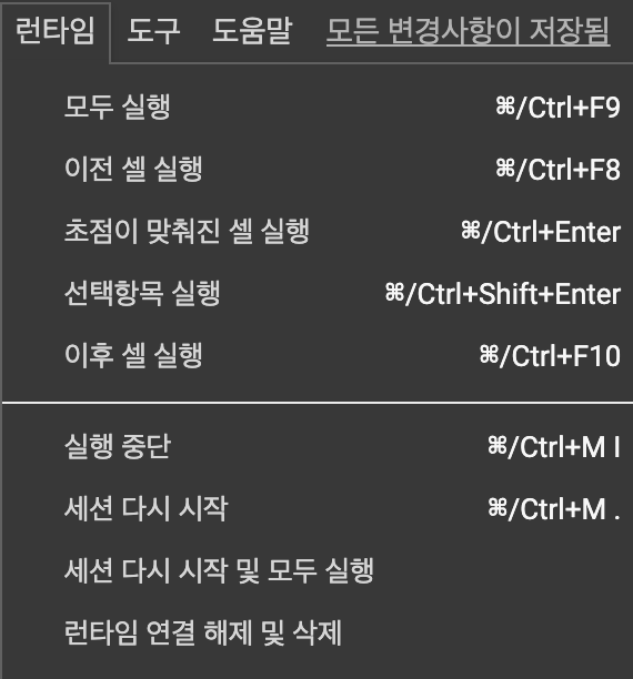 에러 해결을 위해 다시 구글링을 한 결과 여러 블로그에서 "구글 코랩을 다시 실행하면 정상 동작한다"는 글을 확인하고 시도해 보았다.