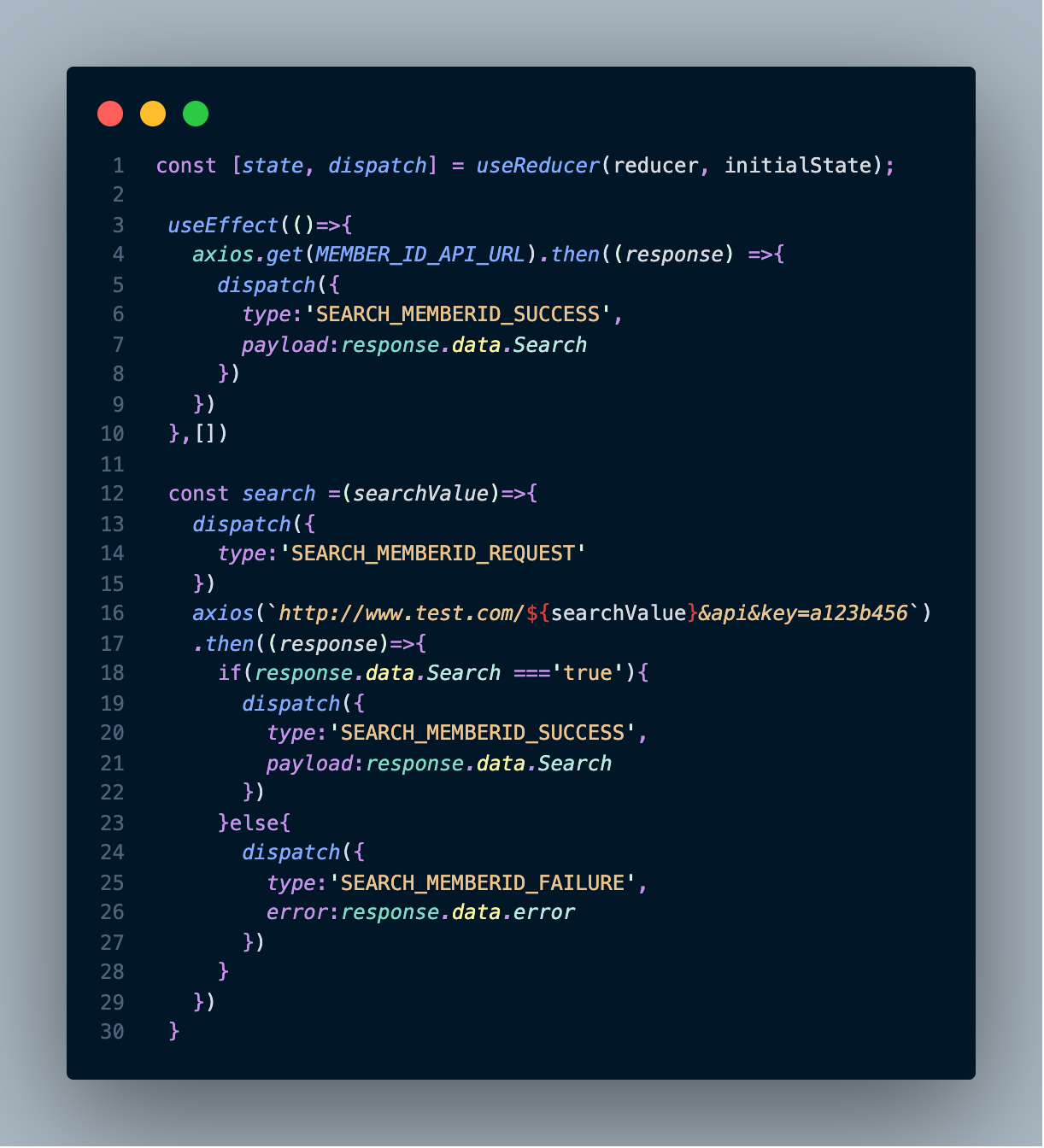 처음에 API에서 받아온 값을 useEffect를 사용하여 바로 dispatch로 reducer로 보낸다음 값을 뿌려주고
