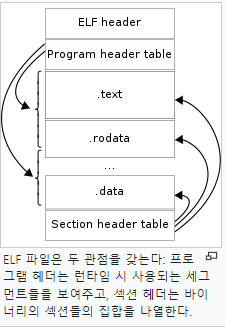 - 프로그램 헤더 테이블 또는 섹션 헤더 테이블의 엔트리들에 의해 참조되는 데이터